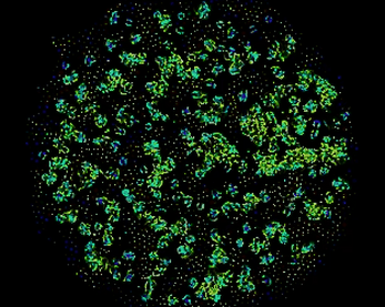 Primordial Particle System experiment made using compute shaders in Unity. It's fascinating how life can emerge from simple rules that the particles must follow. Here, cells can die, grow, feed and live. This is my 9th bio-inspired simulation. Unfortunately compute shaders in WebGL are yet not supported by any computer graphics APIs, maybe in the furute I'll redo this in WebGPU.
